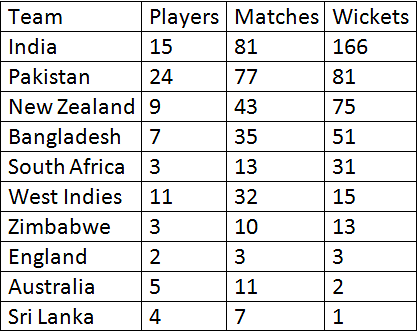 India, meanwhile, leads the way in terms of wickets for teenage spinners. India has produced quality spinners like L Sivaramakrishnan, BS Chandrasekhar, Ravi Shastri, and lately Harbhajan Singh who between them has 166 wickets as teenagers in Test cricket.