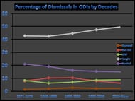 ODI’s Dismissal Summary Decade by Decade with Percentages