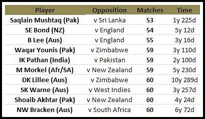 Regarded by many as the finest spinner of his generation, Pakistan’s Saqlain Mushtaq is still the fastest player to complete a century of wickets in ODIs. Intrestingly, the off spinner took under two years to achieve this feat, making him the fastest by time as well.