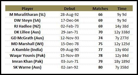 Dale Steyn created yet another record in the ongoing Test series against India, becoming the second fastest bowler in the history of Test cricket to reach 350 wickets. Here is a look at the top 10 list of those who reached the landmark in record time.