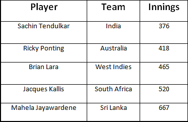 Sachin Tendulkar had taken the least number of innings to reach 50 international centuries. He took just 376 innings to reach the milestone. Ricky Ponting is placed just behind Tendulkar, who took 418 innings.