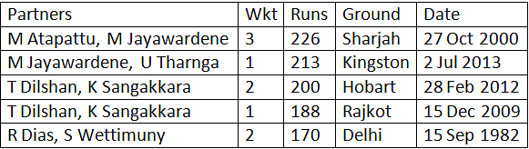 The opening partnership of 213-run between Mahela Jayawardene and Upul Tharanga is Sri Lanka’s second best partnership, for any wicket, against India.