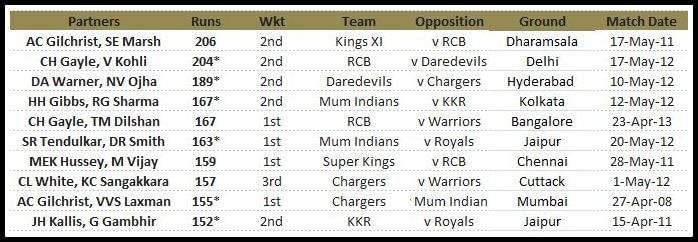Adam Gilchrist and Shaun Marsh of the Kings XI displayed a stellar show against a hapless Royal Challengers Bangalore bowling attack at the Dharamsala. The pair piled on a mammoth 206 for the second wicket, to make it the highest partnership ever recorded in the history of the IPL.