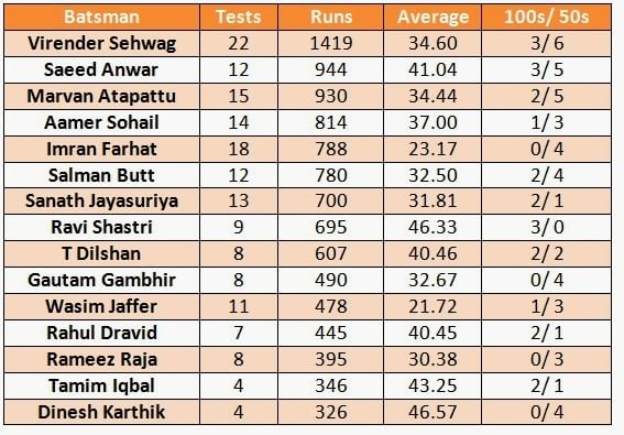 Here is the list of Top 5 subcontinent openers to score the highest in Australia, England and South Africa in Tests since 1990. Though Virender Sehwag tops the list, still his average his career average of 49.34. Though only one Indian features in this Top 5 list, there are 6 Indians in the Top 15. To know more click here.