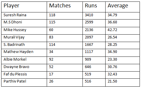 A list of top 10 run scorers for Chennai Super Kings is given below: