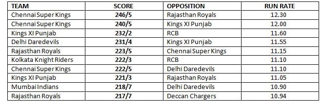 IPL 6 is around the corner, so let’s take a look at the highest team totals in the IPL so far.