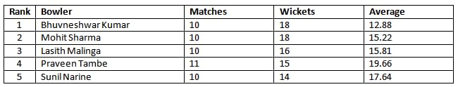 The race for being the highest wicket taker in this year’s IPL is hotting up. At the top, Bhuvneshwar Kumar and Mohit Sharma have been going neck to neck through the tournament, but a surprise package in the form of Praveen Tambe is in hot pursuit with 15 wickets to his name.