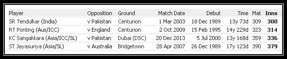 Kumar Sangakkara is also the third fastest batsman to get to the landmark. The stylish southpaw reached the feat in his 336th innings, behind only to Sachin Tendulkar (300 innings) and Ricky Ponting (314 innings).