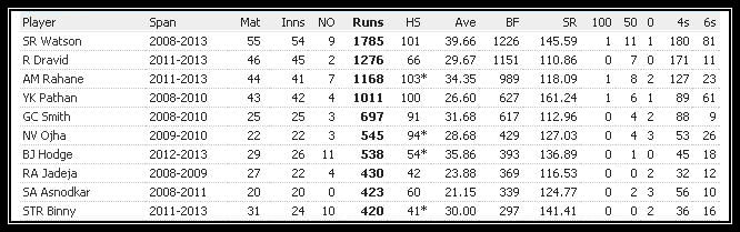 Here is the list of top 10 run-scorers for Rajasthan Royals in IPL.