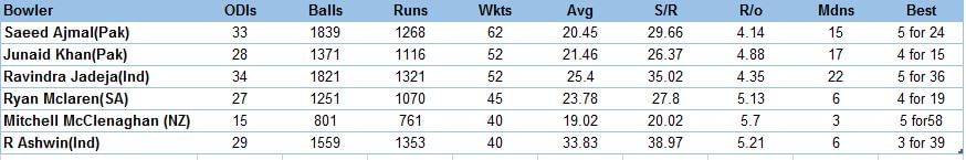 Ravindra Jadeja, Ryan Mclaren, Mitchell McClenaghan and Ravi Ashwin make the top 6.
