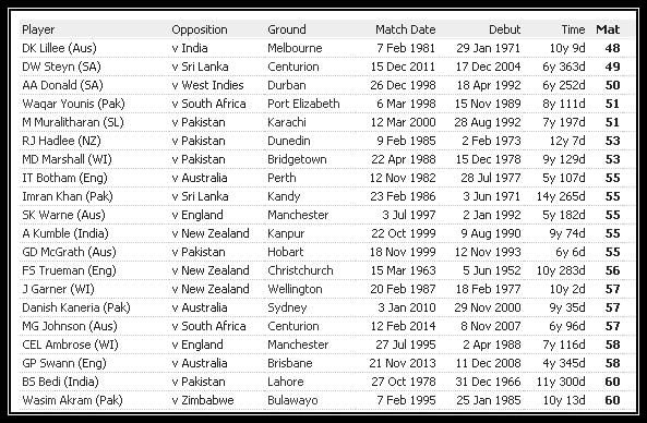 Here is a list of 20 fastest bowlers to reach 250 Test wickets..