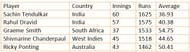 Ricky Ponting and Graeme Smith have scored more number of runs per innings than Sachin Tendulkar. Infact all the other four batsmen in the list average better than the Master Blaster.