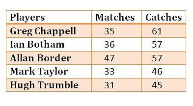 Here is a list of players who have taken the most number of catches in the history of the Ashes series. Wicket-keepers are excluded for obvious reasons. Having taken 61 catches in his 35 Ashes Test matches, Greg Chappell tops the list.