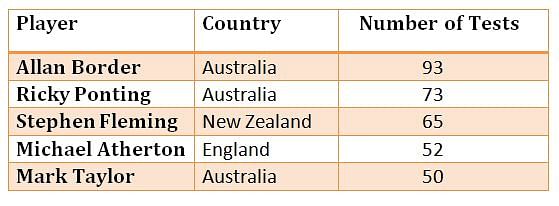 Here is a list of players who have represented their teams in most number of consecutive Test matches as Captain. Former Australian captain Allan Border stands first in the list having captained his side in a record 93 Test matches without a break.