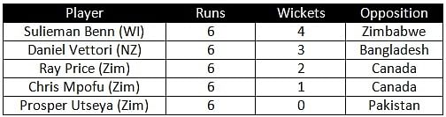 Stat updated till: August 14, 2013Players who have completed their spell of 4 overs only included.