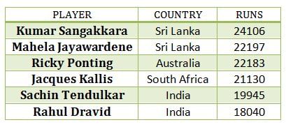 The Sri Lankan duo of Kumar Sangakkara and Mahela Jayawardene lead the list of players who have accumulated the most number of international runs since the year 2000. The list also includes the Indian batting great Sachin Tendulkar.