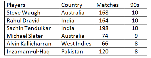 Here is a list of players who were left stranded in nineties the most number of times in the history of Test cricket.