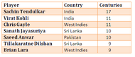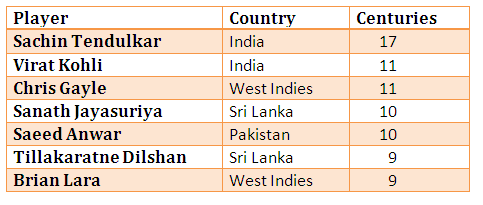 Here is a list of players who have scored the most number of centuries while chasing in One Day International cricket. While Sachin Tendulkar holds the top spot for now with 17 centuries, it would not be long till Virat Kohli overtakes him.
