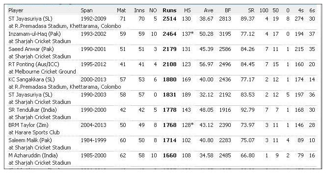 The former Sri Lankan opener, Sanath Jayasuriya holds the record for the most runs by a batsman on a single ground.