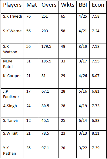 The stats below show the most wicket-takers for Rajasthan Royals in history.