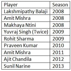 Here is a list showing the players to have taken hat-tricks in all the editions of the Indian Premier League, including the present one. The interesting thing is that there is at least one hat-trick taken every season. The 2008 and 2009 seasons saw 3 hat-tricks each, which is the most in any season. Amit Mishra and Yuvraj Singh share the top spot for most hat-tricks in IPL, with 2 each.