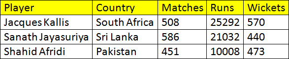 Here’s the list of players with 10,000 runs and 400 wickets in international cricket.