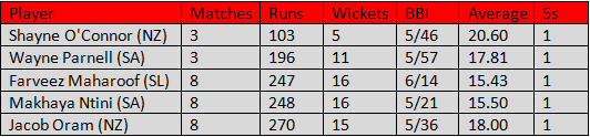 Here’s the list of players who have achieved a five wicket haul in an innings while playing in the Champions Trophy. The list is in ascending order with the criteria being the least amount of runs conceded.