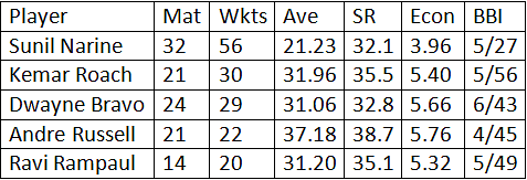 Ever since his debut against India on 5 December, 2011, in Ahmadabad, Sunil Narine has never looked back as he has became West Indies’ best bowler since then, picking up 56 wickets at an average of 21.23 in 32 ODI matches.
