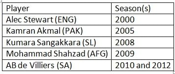 Below is the list of wicketkeepers who have scored back-to-back centuries in ODI cricket. The list includes some of the greatest wicketkeepers in world cricket, and at the same time, doesn’t include some legendary keepers as well. South Africa’s AB de Villiers holds the unmatched record of achieving the feat twice, in 2010 and 2012.