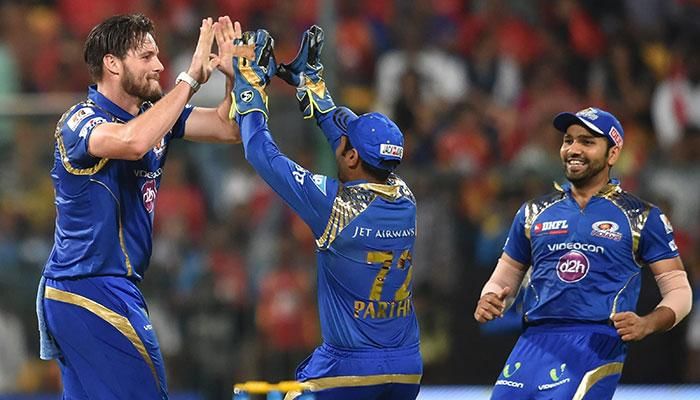 Mumbai Indians: Rohit Sharma (captain), Ambati Rayudu, Abhimanyu Mithun, Aditya Tare, Parthiv Patel, Kieron Pollard, Corey Anderson, Lasith Malinga, Harbhajan Singh, Jasprit Bumrah, Marchant de Lange, Pawan Suyal, Shreyas Gopal, Lendl Simmons, Pragyan Ojha, Mitchell McClenaghan, Aiden Blizzard, Akshay Wakhare, Nitish Rana, Sidhesh Lad, Hardik Pandya, Jagadeesha Suchith, Unmukt Chand and R Vinay Kumar.