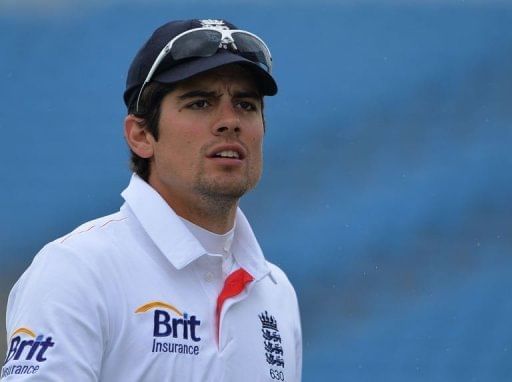 England’s Alastair Cook leaves the field as rain falls during the fifth day’s play in the second Test against New Zealand at Headingley in Leeds, on May 28, 2013. England have won the second and final Test against New Zealand by 247 runs at Headingley, to clinch a 2-0 series win.