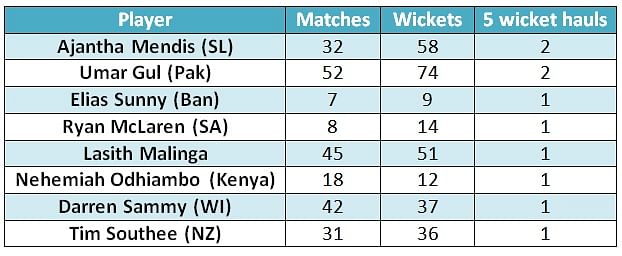 Only 8 bowlers have taken 5-wicket hauls in T20 Internationals. Ajantha Mendis and Umar Gul are the only two bowlers to take a 5-wicket haul twice in Twenty 20 International matches. Here’s the complete list:
