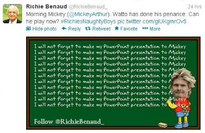 “The Australians are looking to hire a PowerPoint Coach. Applications are to be submitted in the next 5 days via SMS, Email, PPT, or Note Under the Door to Mickey Arthur” – Well Pitched