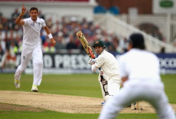Finn dismissed the dangerous Shane Watson with a full delivery that tempted an expansive drive though Watson’s nerves played a significant role. He soon found himself on a hat-trick after he dismissed Ed Cowan with yet another full delivery that swung a tad bit. He was rather unlucky not to have dismissed Michael Clarke on the very first ball as he bowled an unplayable delivery.