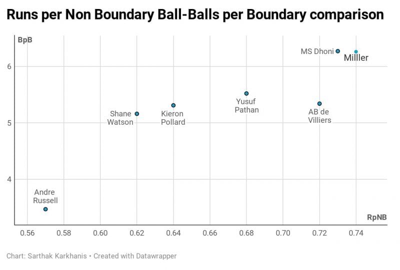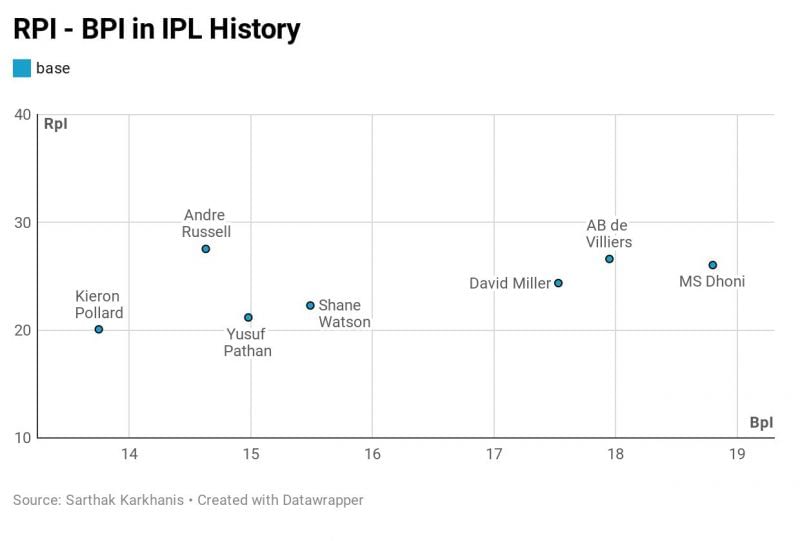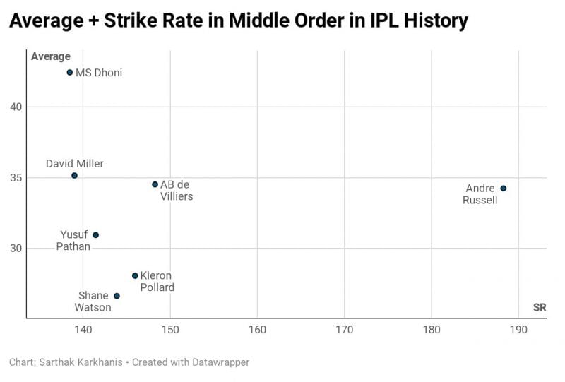 Watson, Pathan and Miller have sub-par scores in both these categories and don't quite stand-out compared Russel, Pollard, Dhoni and De Villiers.