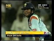 India needed 82 off the final 6 overs. To qualify, they needed to score half that, but Tendulkar was out for blood.