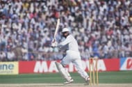 Navjot Sidhu batting for India during a Cricket World Cup first round match against Australia in Delhi, 22nd October 1987. India won the match by 56 runs.