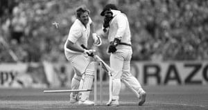 As a natural response, the batsman would begin examining the end of his bat, at which moment Lillee would add his punch: