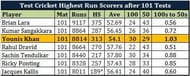 Not only has Younis been better than his contemporaries, he has also been better than the popularly mentioned modern day great test batsmen. Here's a look at where the top 6 leading run scorers in test cricket were after 101 tests. It is so unfortunate that Younis has played only 101 tests in his 15-year career so far.