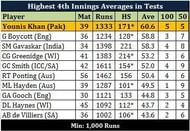 Younis has scored 5 centuries in the 4th innings of tests, more than anyone else in the world. His 4th innings average among all batsmen who have scored at least 1,000 runs in the 4th innings is the highest in the world. He is the only batsman to average over 60 in the 4th innings in the history of test cricket.