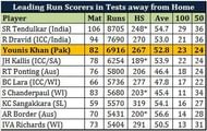 Everyone scores runs at home. Well almost everyone. A true test of a batsman comes when he plays in unfamiliar conditions away from home. In the history of test cricket, only Sachin and Dravid have scored more runs, and only Sachin has scored more centuries, than Younis has in tests away from home.