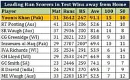 Furthermore, Younis Khan is the leading run scorer in the history of test cricket in test match wins away from home. He also has the most number of centuries in test wins away from home with his unbeaten 171 taking him past Steve Waugh's 14. And no one even comes close to him in terms of average in test wins away from home.