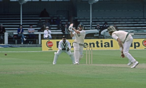 Cricket World Cup 1983, Australia v Zimbabwe at Trent Bridge: Duncan Fletcher hits Jeff Thomson on his way to 69