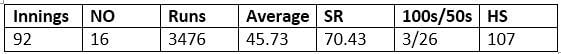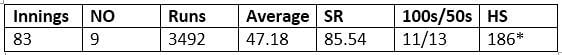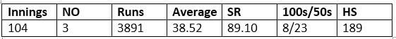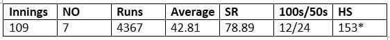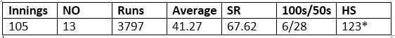His highest score during the period was an unbeaten knock of 123 against South Africa which helped the Sri Lankan to its only victory in a 5-match ODI series on Proteas' home turf.