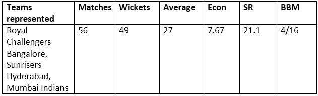 He did make his IPL debut back in 2009 for Royal Challengers Bangalore(RCB) against Deccan Chargers, but he didn't get an opportunity to bowl that day.
