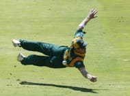 His greatest contribution to cricket though was his acrobatic and agile fielding at backward-point position. The image of a flying Jonty Rhodes breaking the stumps of Inzamam-ul-Haq is etched forever in the mind of every cricket fan. He took a total of 34 catches in the 52 Tests that he played and 105 catches from 245 ODIs.