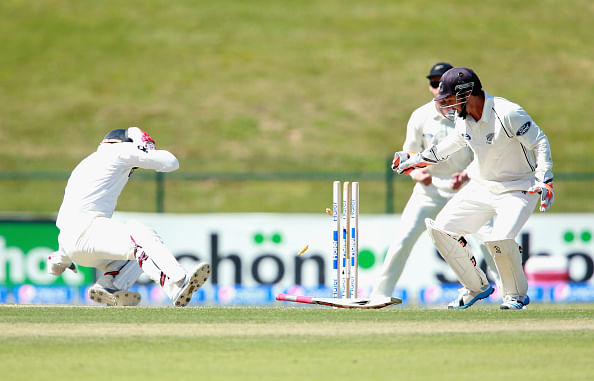 The first Test between Pakistan and New Zealand in Abu Dhabi saw 22-year-old Ahmed Shehzad getting dismissed hit wicket in a very strange manner. The Pakistan opening batsman attempted to pull a short delivery from Corey Anderson but got it all wrong and was hit on the head before losing his grip on the bat. The bat went on to hit the stumps and a marvellous innings of 176 came to an end.