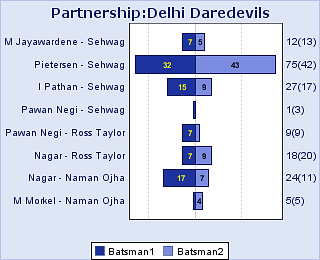 As it was clearly evident, the Warriors maintained a decent partnership throughout their innings, with the 93 off 64 deliveries stand between Ganguly and Ryder being the best. On the other hand, Delhi faltered in this department, even though Sehwag and Pietersen did bat well together.