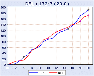 One of the most important parts of a T20 is the slog overs, where the bowlers comes into picture and try to pick up a few quick wickets to avoid being clobbered towards the end. Just when the graph was moving above Pune’s “curve of action”, a few quick wickets saw the run progression reduce for Delhi and helped Pune take the much-needed two points.
