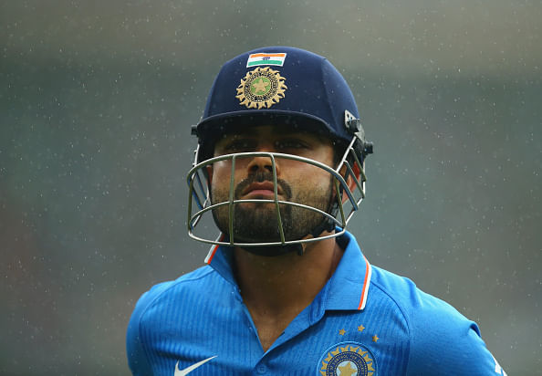 The visitors struggled their way to 69 for two after 16 overs, losing out-of-form opener Shikhar Dhawan (8) and Ambati Rayadu (23). Opener Ajinkya Rahane (batting 28) and Virat Kohli (batting 3) were at the crease when rain stopped play.